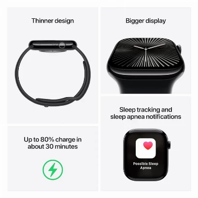 - ویژگی ها مجهز به حسگر الکتروکاردیوگرام/ قابلیت تشخیص سقوط از ارتفاع/ پشتیبانی از Siri / هشدار بیدارباش