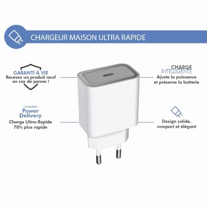 - توضیحات استفاده از فناوری Power Delivery برای شارژ فوقالعاده سریع امکان ایجاد شارژ سریع و ایمن برای همه دستگاههای اپل و آندروید ارائه توان ۳۰ وات از پورت USB-C/ ۷۰ درصد سریعتر از فناوری استاندارد ۵ وات شارژ ۰ تا ۵۰ درصد گوشیهای پرچمدار, در کمتر از ۳۰ دقیقه تشخیص خودکار جریان مورد نیاز برای شارژ دستگاه قطع منبع تغذیه پس از شارژ کامل گوشی/ جلوگیری از گرمشدن و افزایش عمر باتری کاربر
