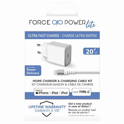 Force wall charger model FPLICS20WCBLCMFIW USB-C PD with 1.2 meter Lightning cable
