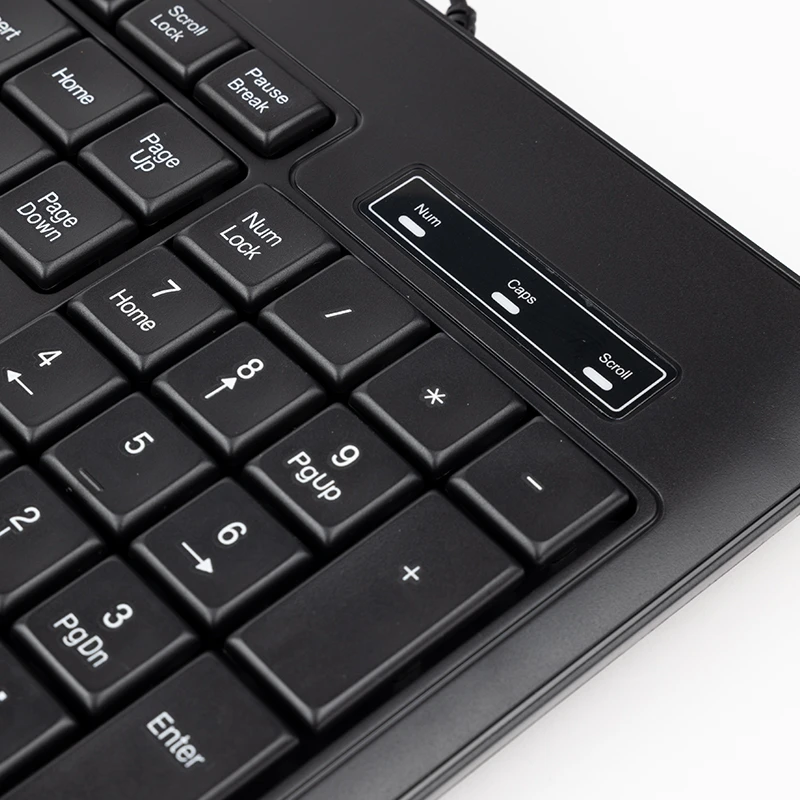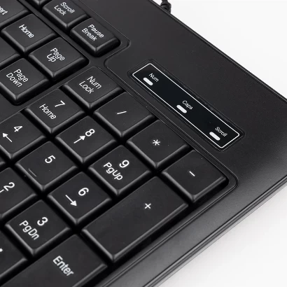 - سایر قابلیتهای صفحه کلید ساخته شده از پلاستیک ABS ۱۰۴ کلید عمر کلید ها ۵ میلیون ضربه طول کابل ۱.۴ متر