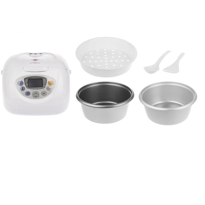 - سایر توضیحات پلوپز، آرام پز، گرم نگهدار، بخارپز - پخت برنج با ۸ رنگ مختلف ته دیگ، پلو آبکش، پلو مخلوط، سوپ برنج، سوپ، خورشت، آش، بخارپز، گرم کن مجدد، گرم نگهدار، تنظیم زمان پخت تاخیری، تنظیم زمان پخت، نمایش زمان جاری و تنظیم زمان اتمام پخت - ظرف مخصوص پخت برنج, با روکش مواد تفلون نچسب بهداشتی و مقاوم با کیفیت بالا - ظرف مخصوص آلومینیومی الومایت شده جهت پخت انواع خورشت ( آرام پز) - دارای ظرف پلیمری بهداشتی و مقاوم در برابر حرارت مخصوص بخارپز کردن مواد غذایی, هوشمند و دارای ۲۱ نوع عملکرد و منو پخت - مجهز به سیستم کنترل بخار - دارای دکمه لمسی - حفظ برنامه تنظیم شده در هنگام قطع برق - دارای سیستم اتصال جدا شونده - دارای هشدار صوتی شروع و پایان پخت, امکان جدا کردن قطعات جهت شستشو در ماشین ظرف شویی - مجهز به سیستم خروج بخار از درب محصول - قابلیت استفاده از ظرف مخصوص بخارپز کردن مواد غذایی - پایه نصب قاشق روی بدنه محفظه جمع آوری بخار آب - دارای ۲ ظرف مخصوص برنج و خورش, استفاده از سیم های نسوز جهت افزایش ایمنی محصول - دارای دستگیره جهت حمل - کلیه منو های پخت با زمان و بصورت فارسی و لاتین نمایان می شود