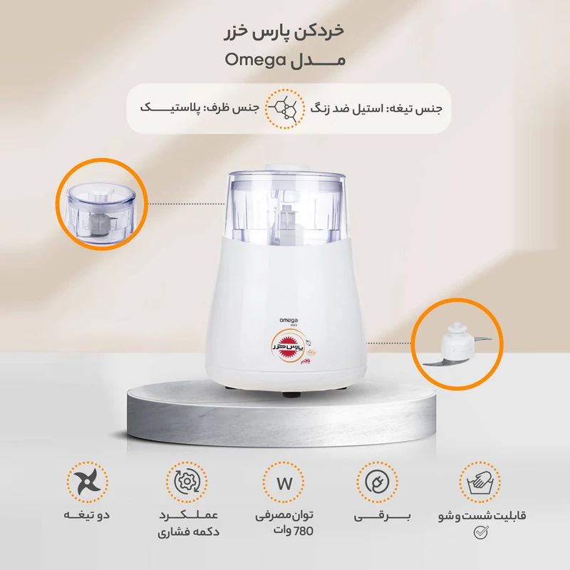 - سایر توضیحات قابلیت خردکردن انواع سبزیجات، خشکبار و گوشت قرمز, تک سرعته