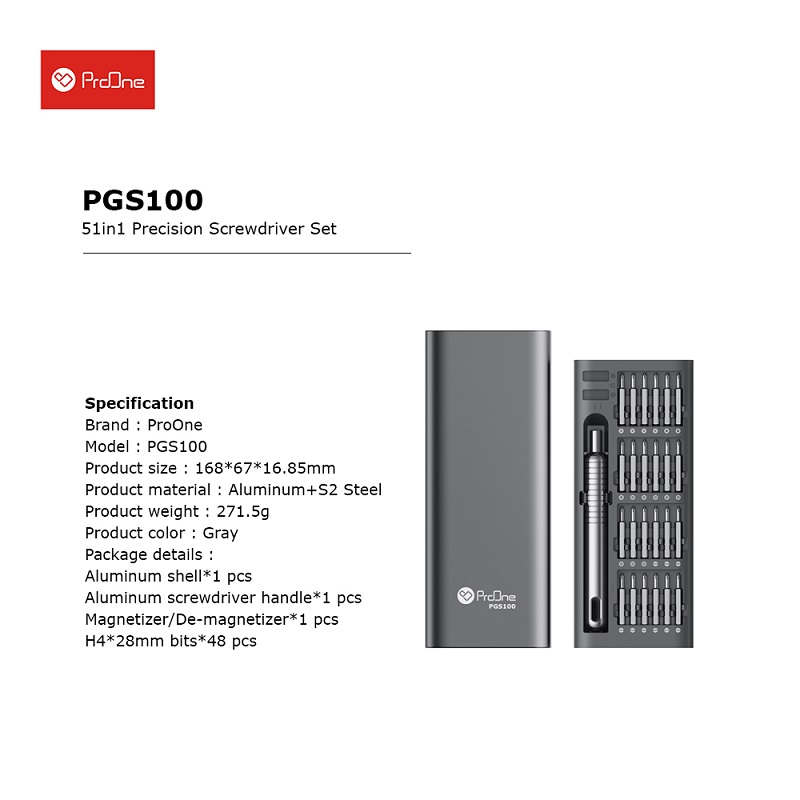 پیچ گوشتی و سری پیچ گوشتی پرووان مدل ProOne PGS100 بسته 51 عددی