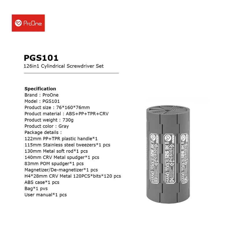 پیچ گوشتی و سری پیچ گوشتی پرووان مدل ProOne PGS101 بسته 126 عددی