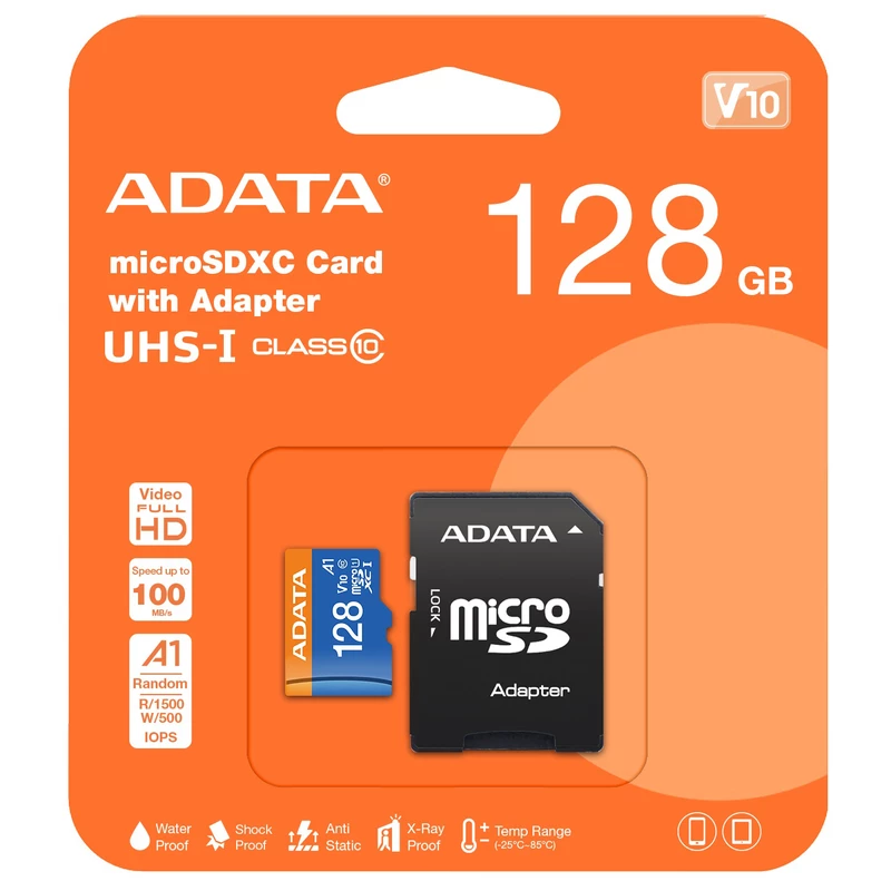 کارت حافظه microSDHC ای دیتا مدل V10 R100 W25+ADP ظرفیت 128 گیگابایت