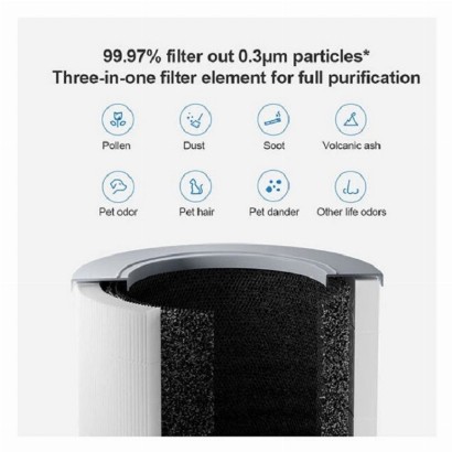 - توضیحات کالا ترکیبی از دو فناوری فیلتر . فیلتراسیون الکترواستاتیک و مکانیکی استفاده از فیلتر هپا با تاثیر زیاد دارای فیلتر با سه لایه. لایه اولیه مناسب برای گرد و غبار و مو های بزرگ . لایه دوم فیلتر هپا با تاثیر زیاد. لایه سوم فیلتر کربن فعال, قابلیت کنترل از طریق نرم افزار /قابلیت تنظیم قدرت فن. زمانبدی شروع به کار . مشاهده کیفیت هوا و تنظیم قفل کودک پشتیبانی از دستیار صوتی مصرف انرژی بسیار بهینه در کمترین حالت به ۰.۷ کیلو وات ساعت برای یک شبانه روز, ذرات معلق به اندازه ۰.۳ میکرون نویز بسیار کم ۲۰ دسیبل قابلیت تصفیه گرده ها. گرد و خاک . دود سیگار . خاکستر آتش. بو و موی حیوان خانگی . شوره حیوانات خانگی و ... دارای گواهی مراقبت از آلرژی TUV, مناسب برای روی میز و روی زمین حذف آلرژن برای افراد حساس به آلرژی نمایشگر با قابلیت نشان وضعیت آلودگی مناسب برای فضای تا ۴۸ متر مربع قابلیت تنظیم خودکار سرعت فن فیلتراسیون ۹۹.۹۷ درصد